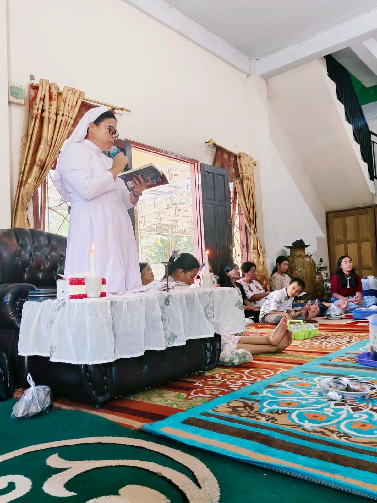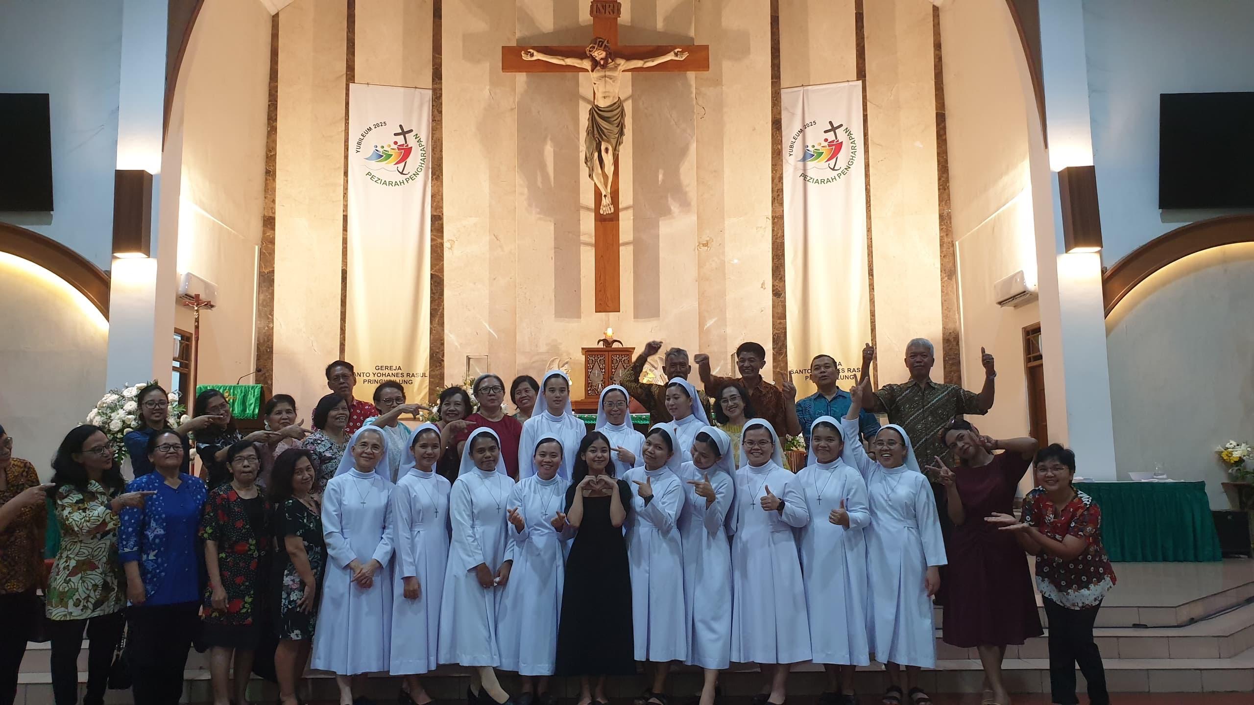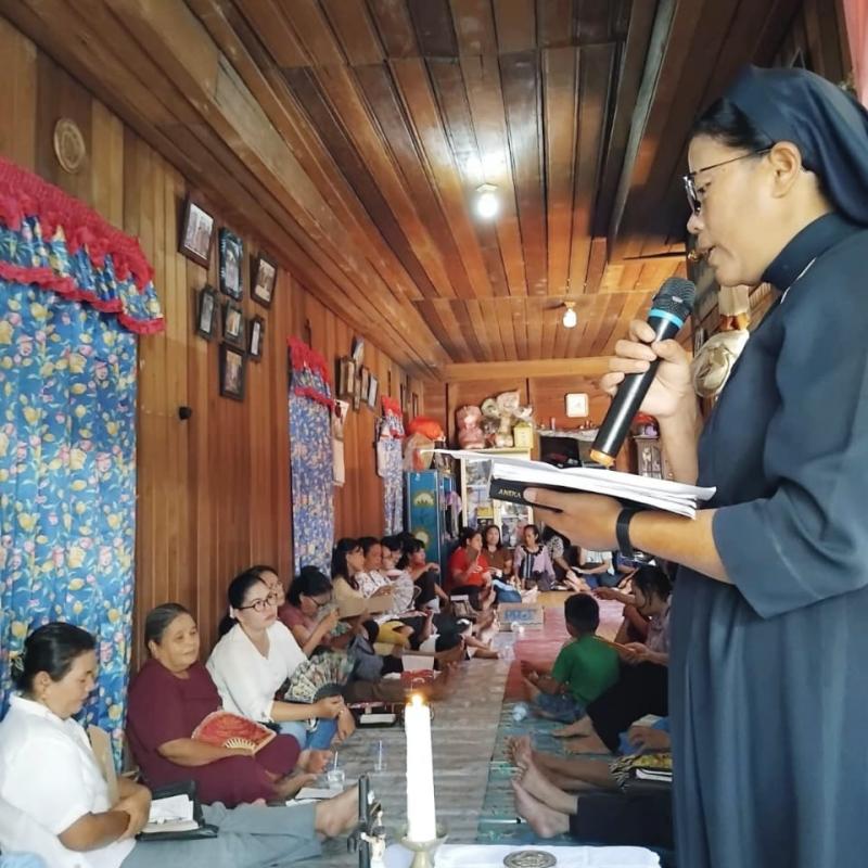 As a concrete expression of their mission to reveal God's merciful love, the SCMM Sisters view pastoral work as an integral part of their calling in life. In Indonesia, the sisters faithfully carry out their pastoral work, actively participating in various spiritual activities in parishes and communities. They accompany spiritual groups such as the Legion of Mary, Divine Mercy, charismatic groups, accompanying Catholic Youth, teenagers, and children, coaching choirs, accompanying altar servers, being sacristans in churches, accompanying children receiving their First Communion and Confirmation, providing catechesis on the Catholic faith, participating in community prayers with the faithful, and serving as members of the Parish Council.